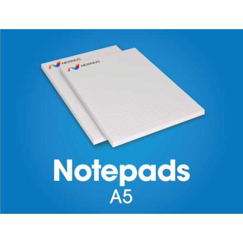 A5 Note Pads printed full colour 1 side on 100gsm bond. Padded in 50's with a backing board